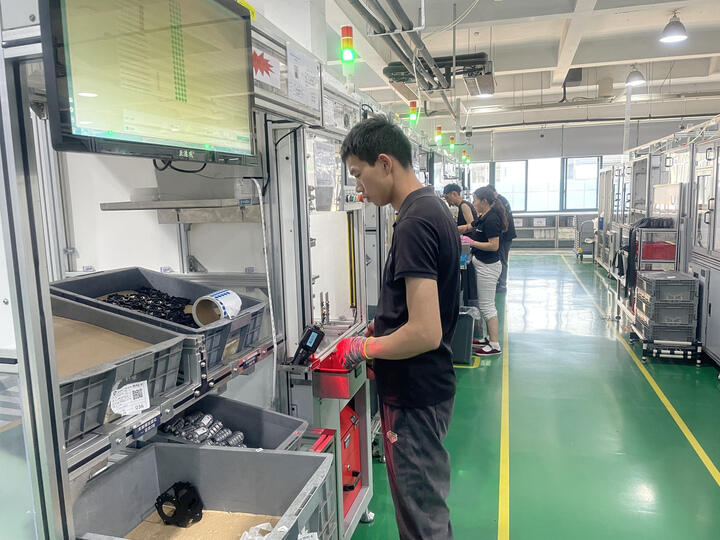 随处流转的机器人、高频运转的自动化设备以及各种机械手,工人们站在设备前专注生产,组装完毕的产品源源不断地通过运输车送到仓库……