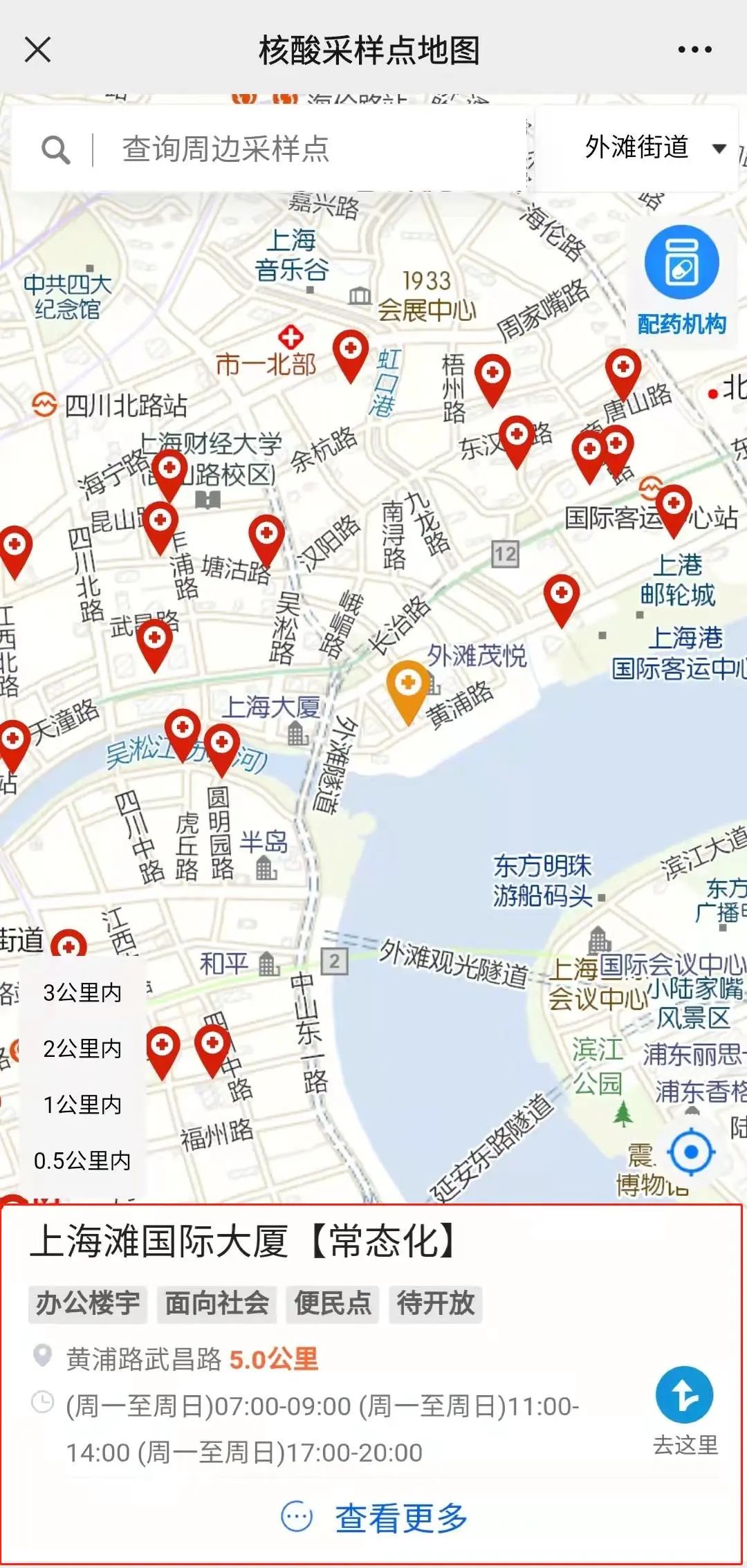 提问三:我想看看某个街镇的核酸采样点分布情况,该怎么操作呀?