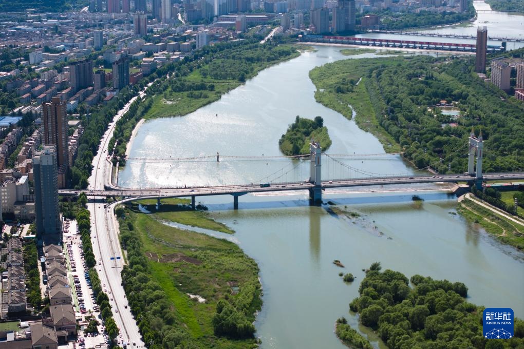 宝鸡市城区渭河两岸景色(5月9日摄,无人机照片)。