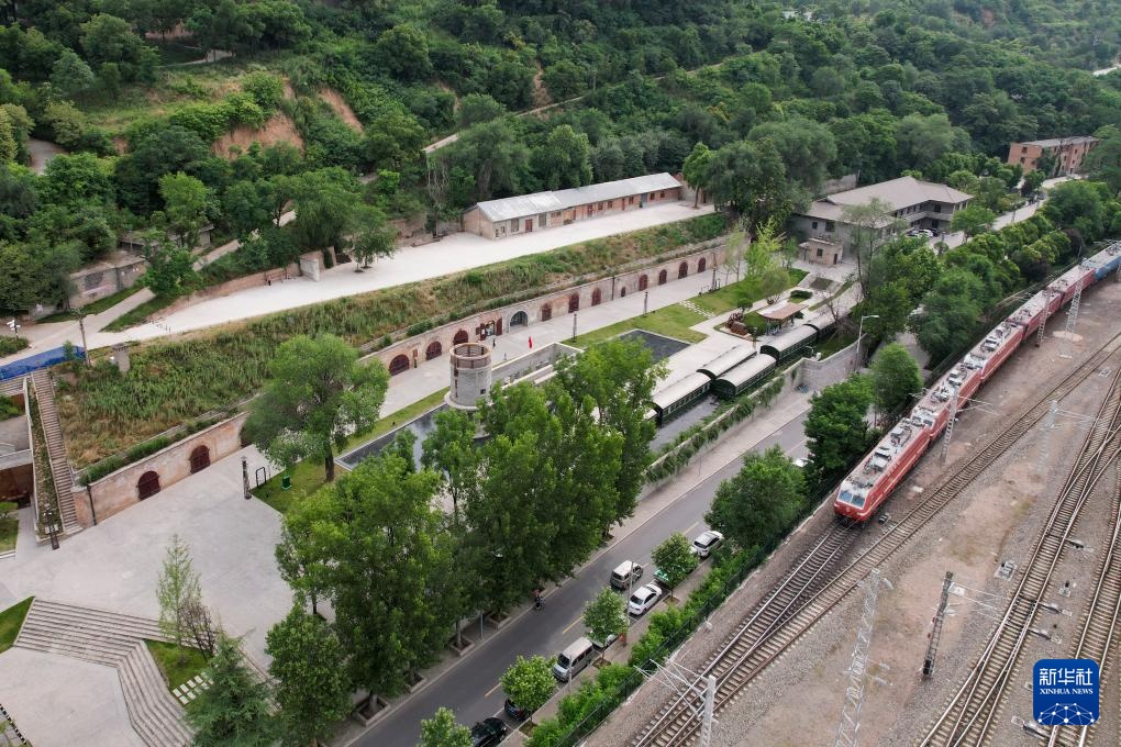 修建在陇海铁路旁的宝鸡长乐塬抗战工业遗址(2022年6月9日摄,无人机照片)。