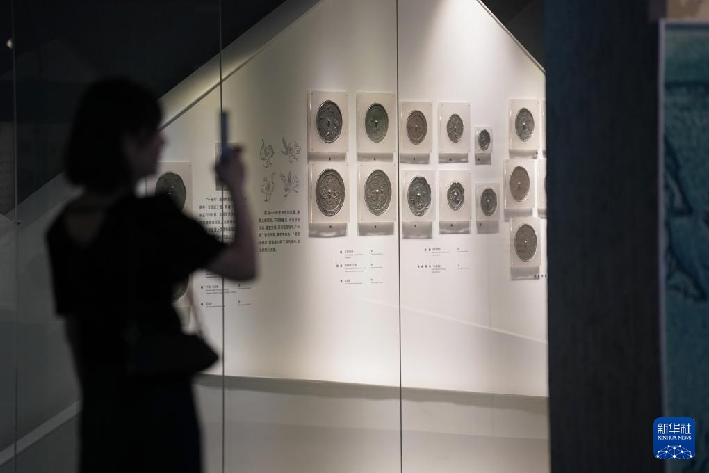 5月9日,游客在宝鸡青铜器博物院内观赏古代铜镜。