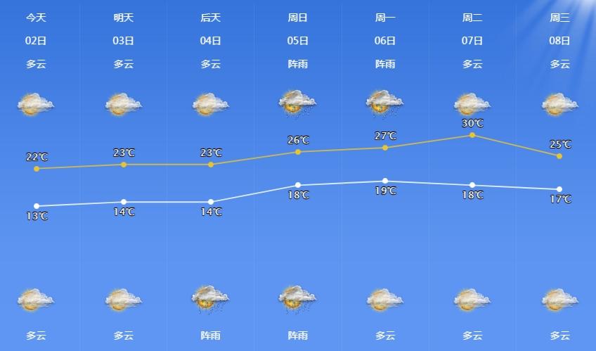 不过6日起雨水将告一段落,后期天气以多云为主,气温也将有明显的上升,最高气温在30℃左右,最低气温在18℃上下。