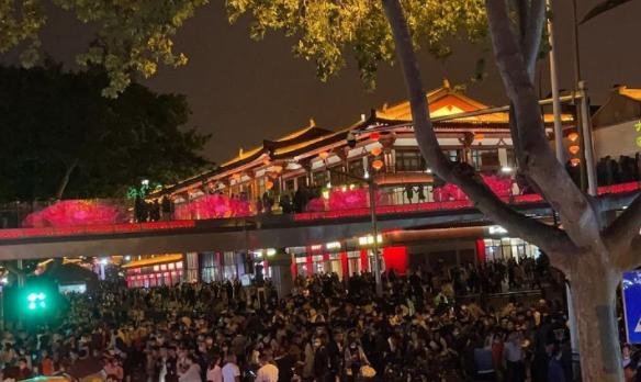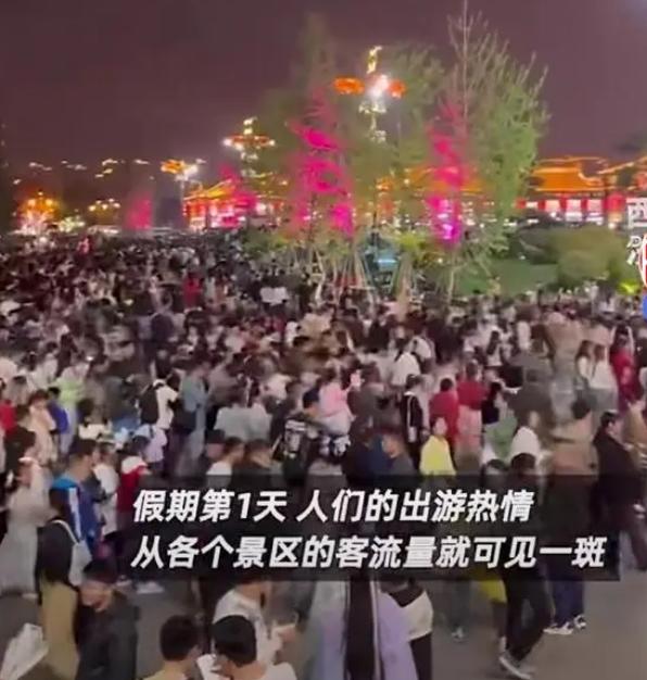 昨天晚上,在西安,大唐不夜城的人流也是极为壮观,网友戏称“大唐不夜城已被六国游客攻陷”。