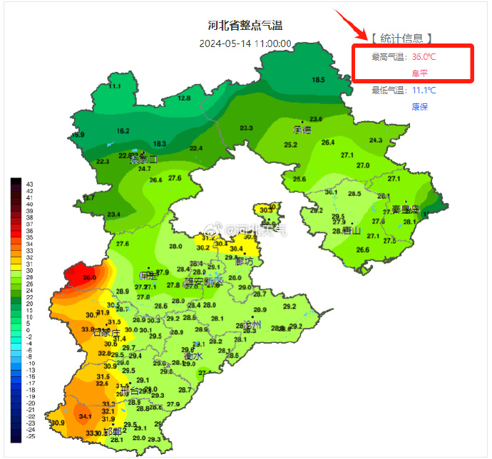 今日10时气温:河北省北部坝上多在20℃以下,其他地区普遍有28℃左右,保定西部、石家庄西部、邢台西部、邯郸西部一带达到了30℃以上。