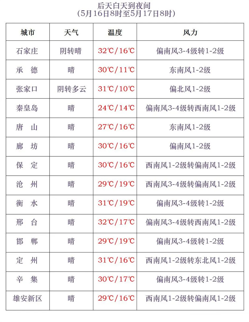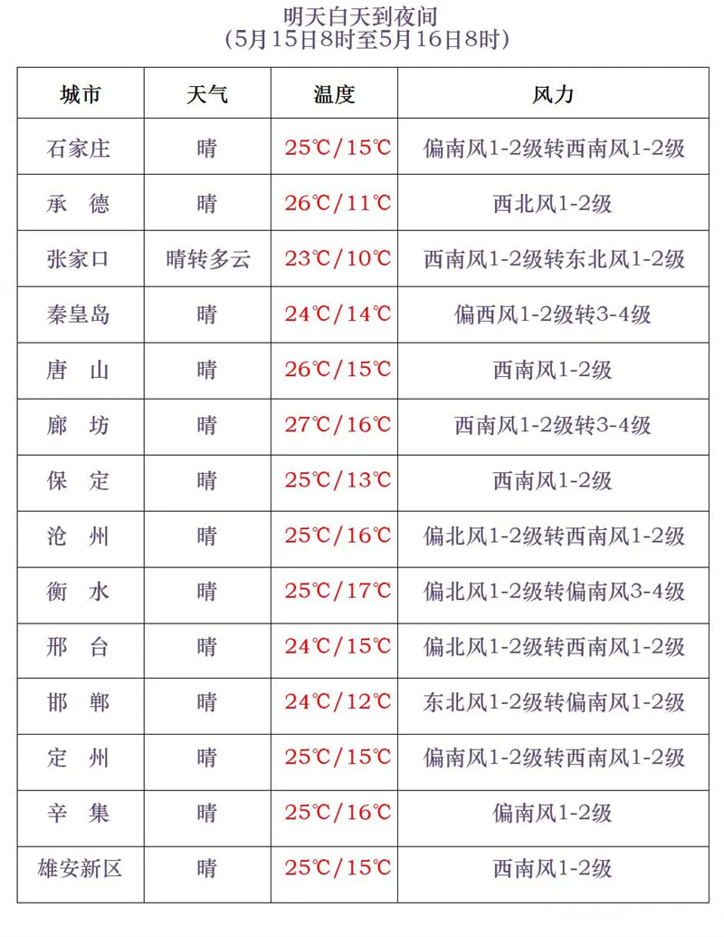 明天夜间到16日,张家口、承德西部、保定西部及石家庄西北部多云转阴有分散性雷阵雨或阵雨,其他地区晴间多云。