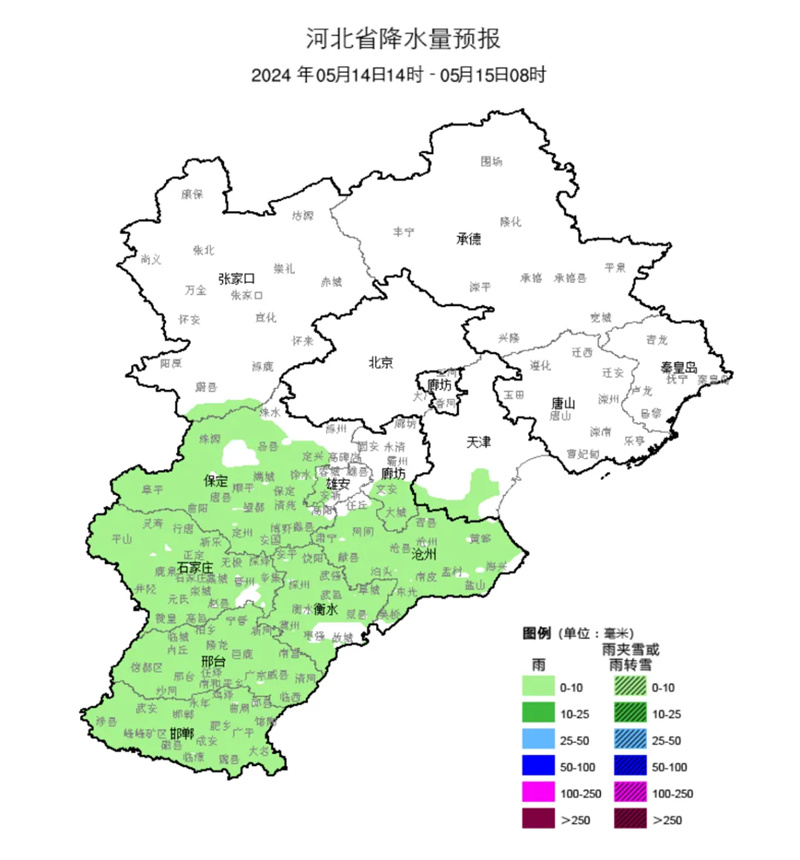 14日白天到夜间,我省大部分地区设施农业大风灾害风险等级在Ⅲ级及以上,大风可能造成小棚棚膜破裂、棚架折断,中棚棚膜破裂,其中,廊坊南部、沧州中部、衡水东部设施农业大风灾害风险等级为II级,大风可能造成中棚棚膜破裂、棚架折断,大棚棚膜破裂,请注意防范。