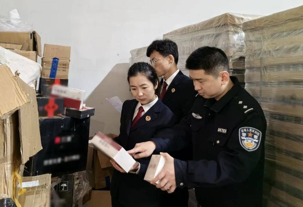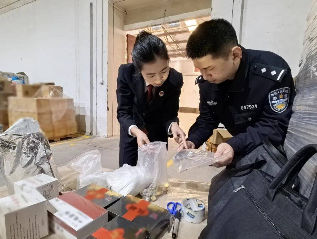 2023年3月,上海铁检院检察官与公安民警查看涉案物品。