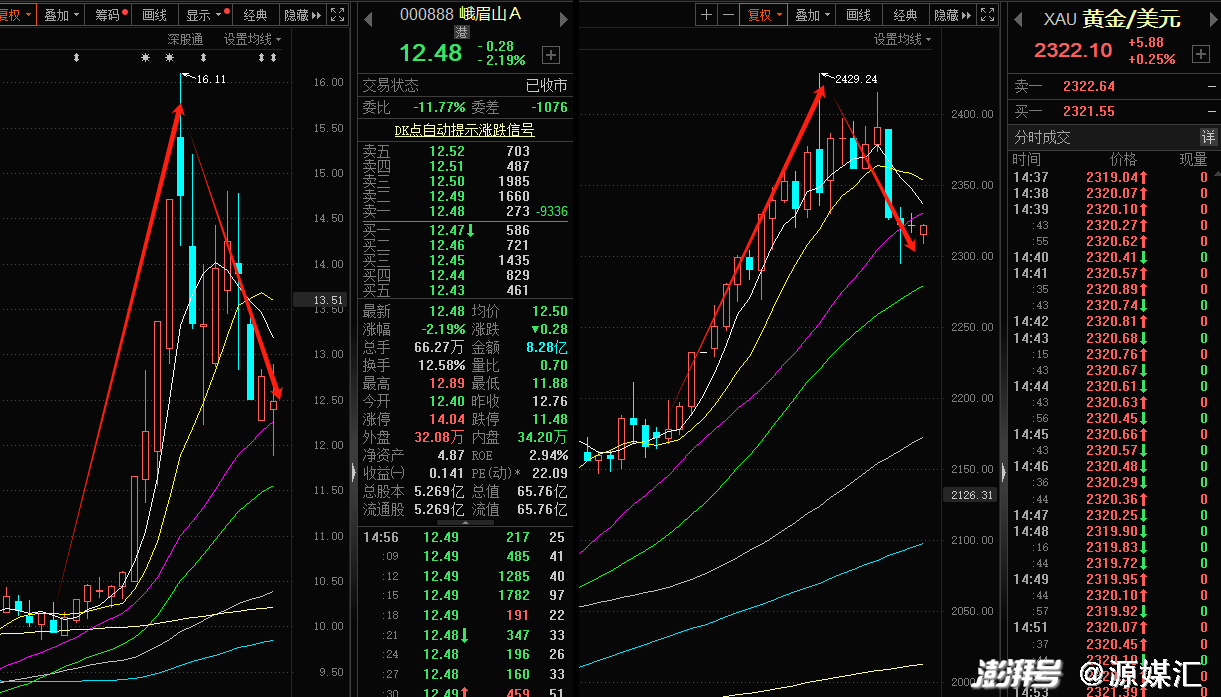 经过此前连续多日的暴涨之后,近期峨眉山A的股价随着金价的回落开始下跌,二者再现“惊人的相似”。