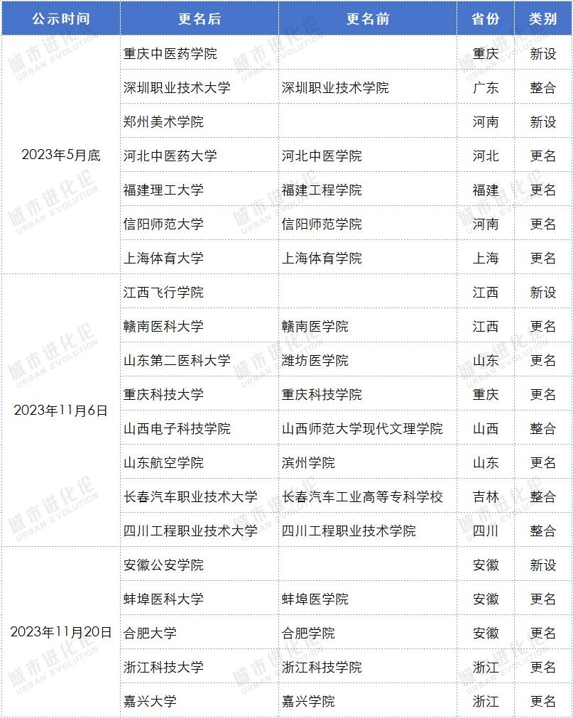 各省份拟更名高校 图片来源:城市进化论(根据公开资料整理)