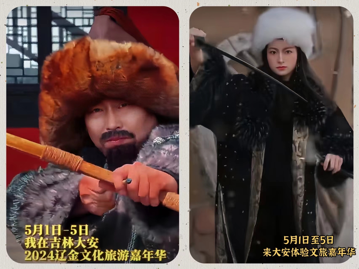 在短视频平台、微信、微博等媒介宣传渠道,大安市文广旅局局长刘春兴和大安市大赉乡党委副书记曲瑞雪变装成气宇轩昂的大辽皇帝耶律洪基和神秘的萨满、英姿飒爽的大辽公主,邀请全国网友来大安体验辽金文化,引发了网友的广泛关注和讨论,累计获得500余万的浏览量,为大安旅游带来了火爆的人气。通过变装吸引网友关注大安辽金文化,通过新媒体媒介让文旅融合更“吸睛”,让大安市“五一”期间旅游市场热度高、活力旺。