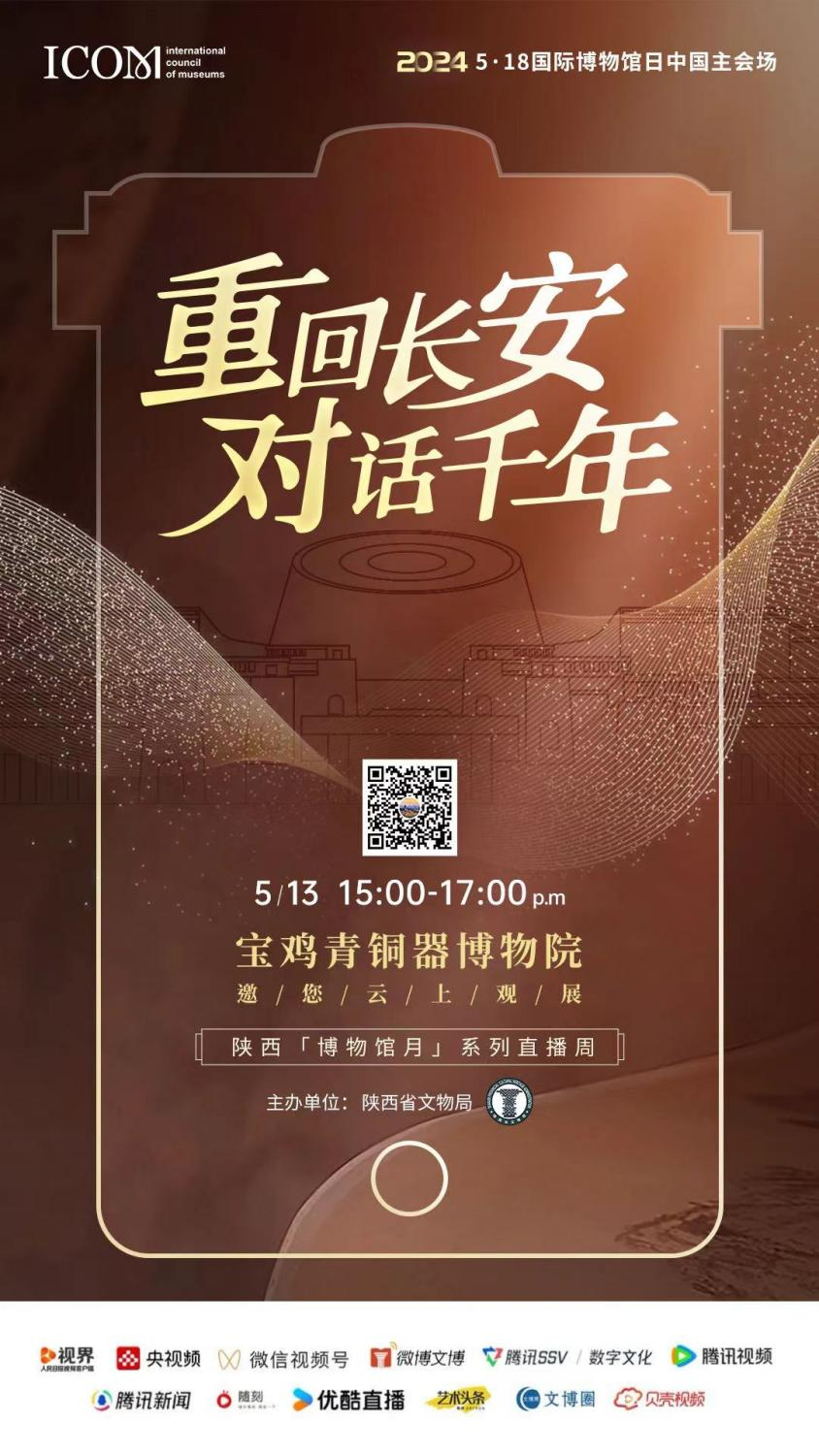 方寸之间,一览千年。本次系列直播周由宝鸡青铜器博物院、汉景帝阳陵博物院、西安大唐西市博物馆、陕西自然博物馆、陕西历史博物馆秦汉馆五家博物馆于5月13日至5月17日通过直播接力形式展现中华文明的万千气象,揭秘文物背后的历史密码,把博物馆带到您的身边。“云博物”以致知,解锁不一样的互动新体验,直播中,我们的讲解员将会带领您一起畅游博物馆,沉浸式云端逛展,与文物来一场跨越时空的“双向奔赴”。