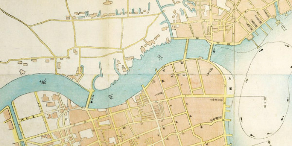 《清国上海全图》测制精良,绘印洁雅。图中真实表现了同光之际苏州河地带的历史景观:当时河北岸尚有不少小河浜,且河岸弯弯曲曲,呈现自然河道的特点,而南岸已经整饬完备,给人以街路井然、码头临水而立,给人以欣欣向荣的印象。河上桥梁又有增加——即乍浦路桥,该桥是美国圣公会主教蓬恩(文惠康)在头摆渡渡口所建的一座浮桥,正是在《清国上海全图》出版的1873年,此桥改为木桥,当时国人称为“头摆渡桥”。而从此以后,上海也进入了快速城市化的轨道。