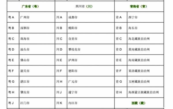 二十三个省:河北省(冀)、河南省(豫)、云南省(云)、辽宁省(辽)、黑龙江省(黑)、湖南省(湘)、安徽省(皖)、山东省(鲁)、江苏省(苏)、浙江省(浙)、江西省(赣)、湖北省(鄂)、甘肃省(甘)、山西省(晋)、陕西省(陕)、吉林省(吉)、福建省(闽)、贵州省(贵)、广东省(粤)、青海省(青)、四川省(川)、海南省(琼)、香港特别行政区(粤)、澳门特别行政区(粤)、台湾待定。