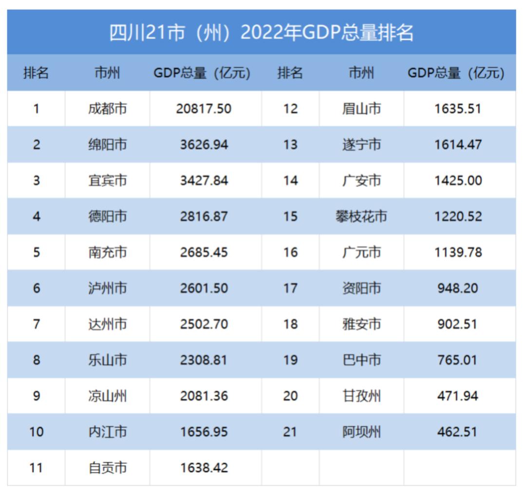 目前四川经济副中心,从单个城市看,绵阳、宜宾均仍在向4000亿冲刺,泸州则仅有2600亿左右。