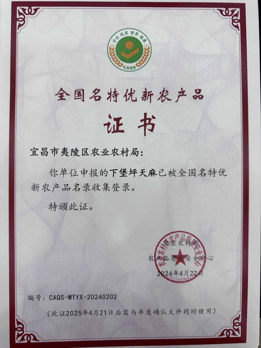 夷陵区下堡坪天麻入选