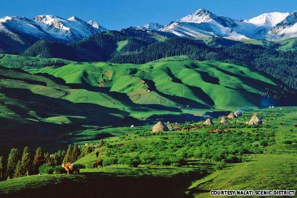 中国西北部的这个亚高山草甸草原非常独特。传说,当年成吉思汗帅军路经此地时,被这里苍翠的颜色所震撼,遂名之曰“那拉提”(蒙语,意为“太阳浮现”)。