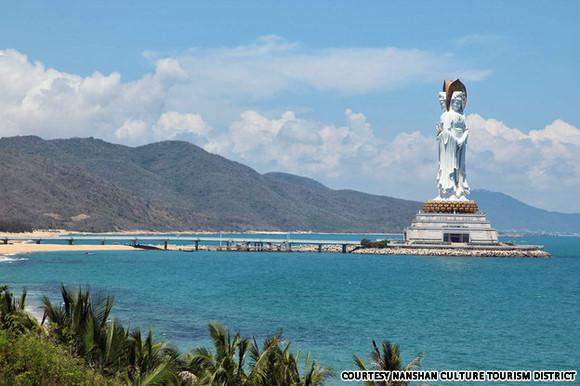 站在三亚海滩上向远处眺望,可以看到世界最大的观音像,矗立在南山脚下——这是位于中国最南端的山。