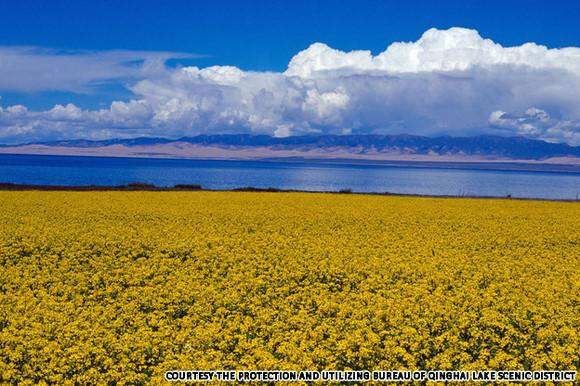 上图是每年6、7月份,中国青海省引人入胜的景观之一。青海湖海拔3205米,距周边最近的交通枢纽西宁约3小时车程。