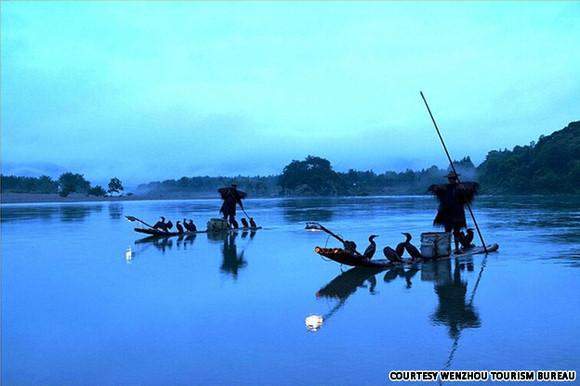 乘竹筏在楠溪江水流而下,游客们既可以欣赏到当地居民凭水浣衣,也可以看到渔民用古老的方法捕鱼—鸬鹚捕鱼。香鱼是楠溪江特有的珍惜淡水鱼。