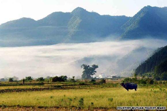 阴雨天气最适于梯田观光,此时河水蒸发的雾气,笼罩在梯田上方,随风轻轻浮动,形成海市蜃楼般的农田美景。
