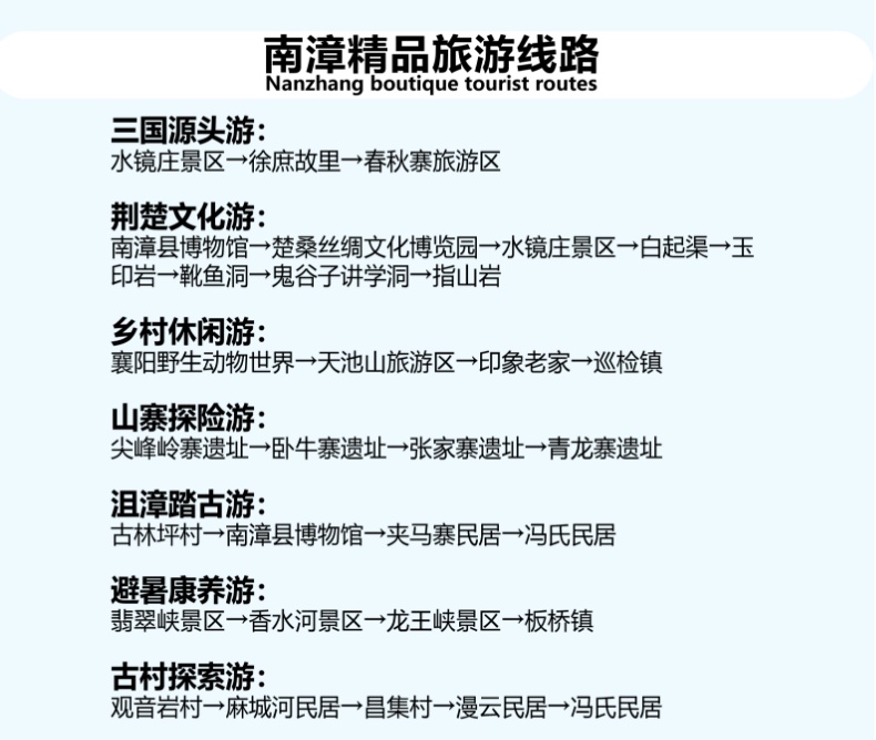 如果你为规划旅行路线而犹豫不决,被各种旅游景点、历史文化、自然风光等信息弄得眼花缭乱,最后却还是无法做出决定?精品旅游线路则为你提供了全面、详细的旅游路线规划,无论你是喜爱三国历史、荆楚文化还是钟情于大自然的壮美风光都能轻松选择,畅快旅行!