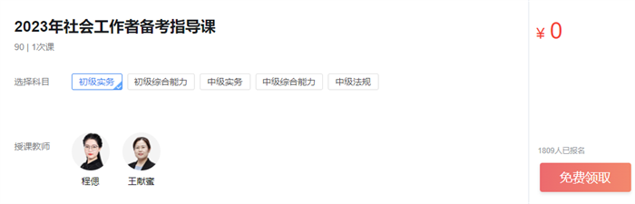 2023年社会工作者考试备考已开始,免费的备考指导课提供给大家,点击即可【免费领取】!