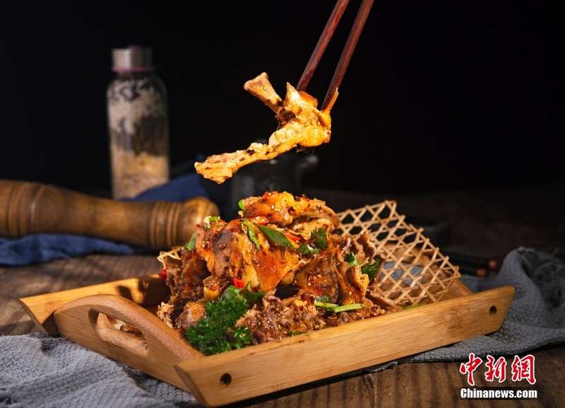 在沈阳,无论是慕名而来的游客还是土生土长的本地人,想要一饱口福,鸡架都是不容错过的“必选项”。所谓鸡架,就是整只鸡去掉鸡腿、鸡爪、鸡胸等剩下的骨架,听起来似乎“食之无味,弃之可惜”,然而沈阳人却用煮、烤、炸、熏、炒等多种烹饪手法将之“变废为宝”。图为熏拌鸡架。