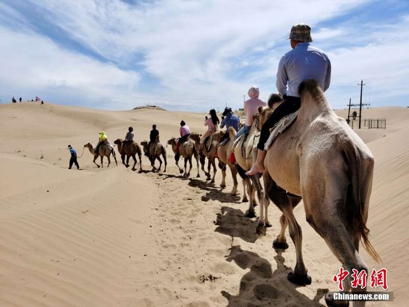 图为内蒙古鄂尔多斯,银肯塔拉沙漠,游客体验骆驼骑行乐趣。银肯塔拉沙漠生态文化旅游区位于内蒙古鄂尔多斯市达拉特旗展旦召嘎查境内,是一处集沙漠生态文化、草原文化为一体的国家AAAA级综合性旅游景区。银肯塔拉沙漠沙丘连绵分布,景色壮观。