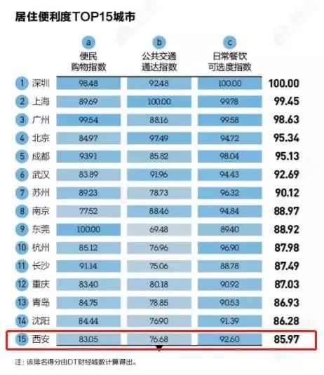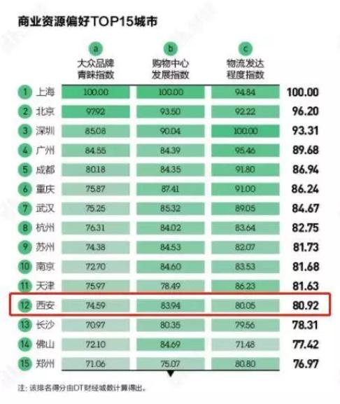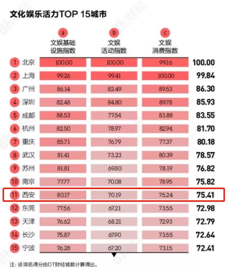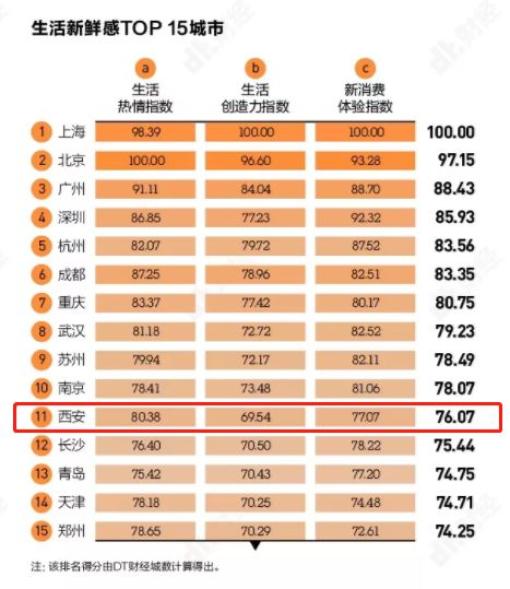 榜单显示,西安名列第12位