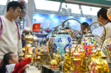 5月19日,在第八届中俄博览会现场,参会者在国际展区了解工艺品。本届博览会有44个国家和地区120余个中外代表团参会,这些国家和地区各具特色的工艺品吸引与会者参观欣赏,成为博览会上的一大亮点。