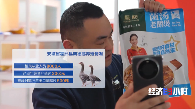 从摸索养殖培育到产品推销,胡建远学着注册公司、注册商标,霍邱鹅肝也有了自己的品牌,并开始一步步走向全国市场。