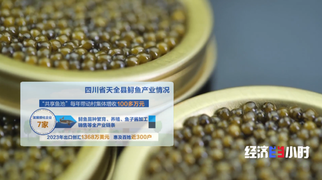其中四川雅安天全县一家鱼子酱生产企业在2023年生产了60吨鱼子酱,占全国产量的23%,这个产业源于这家企业在十几年前的鲟鱼养殖。