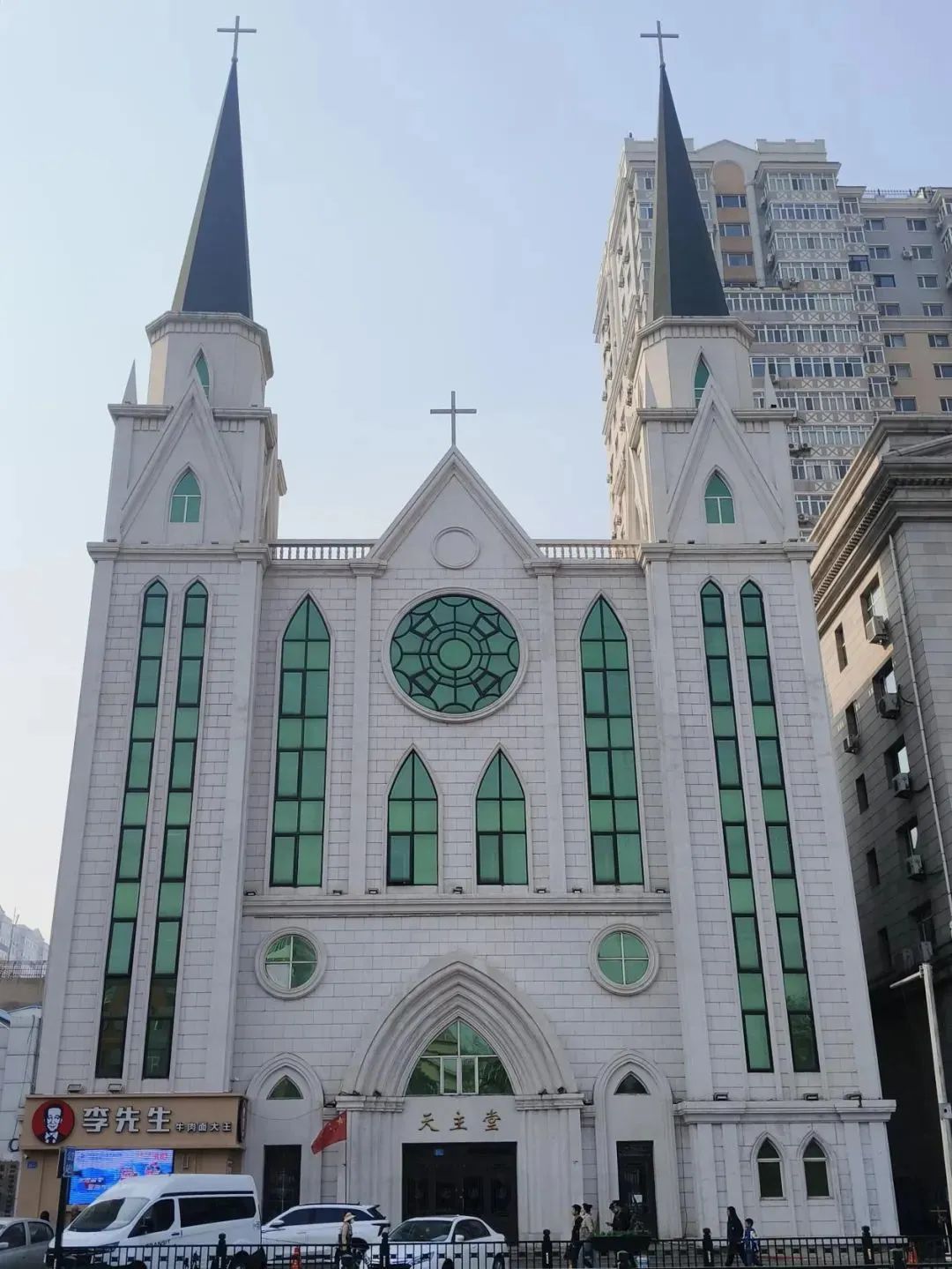 这里曾经是南岗圣斯坦尼斯拉夫教堂(波兰天主堂)。20世纪初,参与建设中东铁路的波兰侨民众多,其中大部分是天主教徒。1906年,波兰教徒集资在哈尔滨南岗东大直街建造波兰天主堂,于1907年落成。1959年,黑龙江省天主教爱国会将省内几个教区合并,主教座堂就设在此处。后来几经占用改建,2004年,在此重建了耶稣圣心主教座堂即现在的天主教堂,塔尖高51.6米,是黑龙江规模最大的天主教堂。