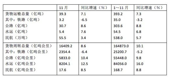 5、关于2014年1~11月我国货物运输状况,能够从上述资料中推出的是: