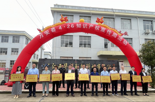 4月22日上午,万安县市场监管局举行知识产权宣传周活动启动仪式,局党委书记、局长肖金明参加活动并致辞。局党委书记、局长肖金明,党委委员、副局长梅磊,党委委员安定,知广股负责人梁景琛,四位知识产权联盟成员单位代表为2023年度县知识产权工作先进集体和先进个人颁奖。