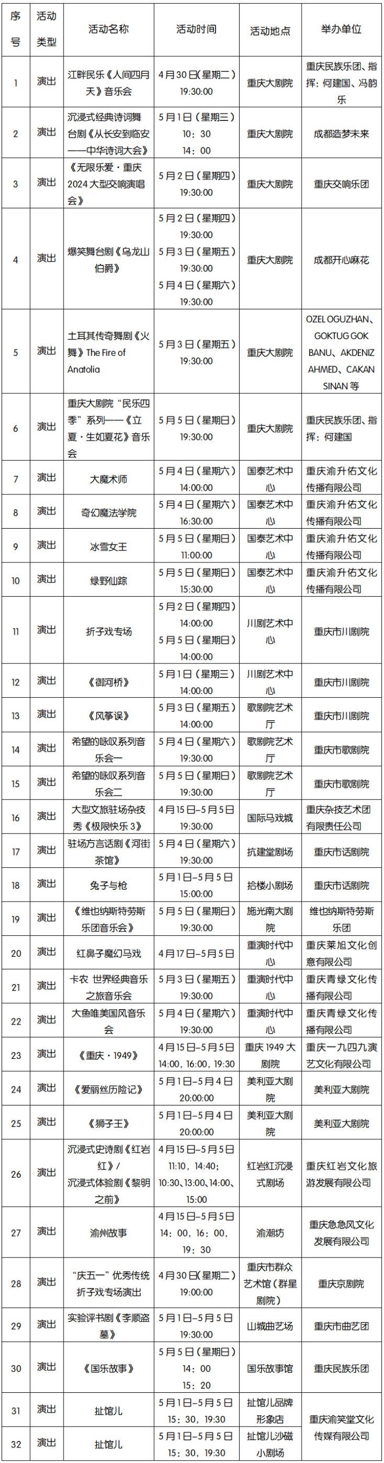 2024年五一节期间重点演出活动