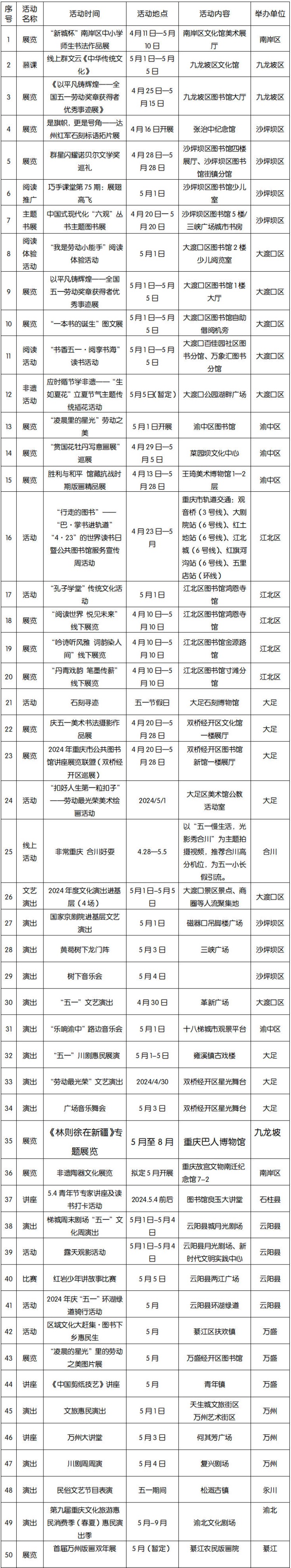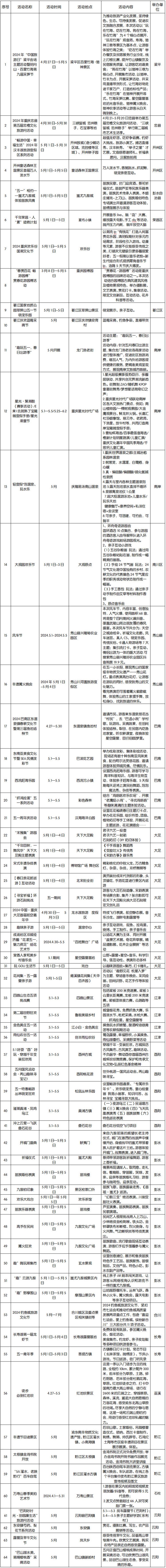 2024年五一节期间重点节庆活动
