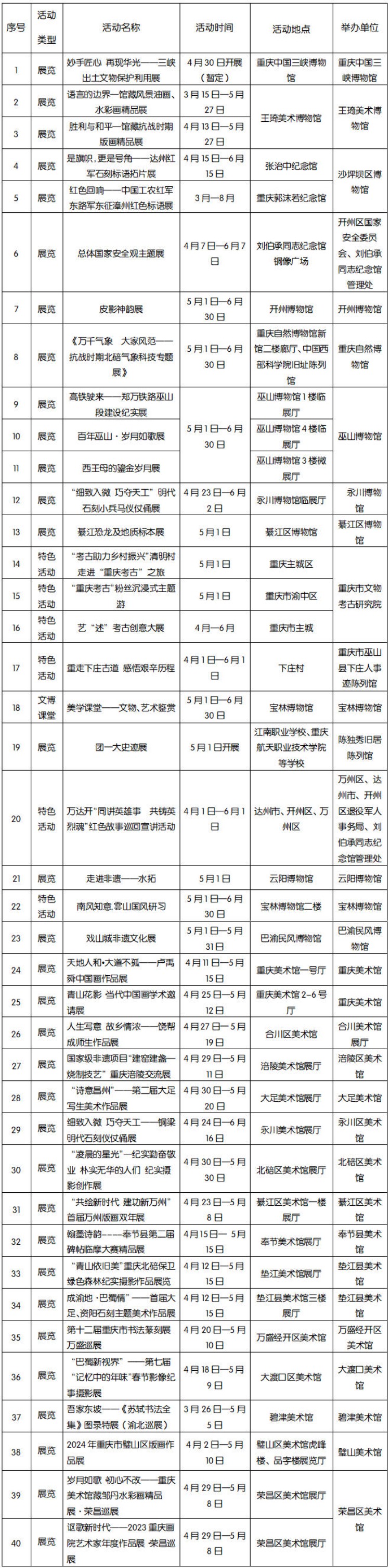 2024年五一节期间重点文博活动
