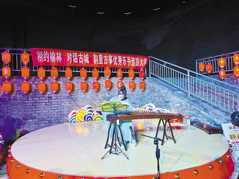5月14日,学生在榆林古城内演奏古筝。记者 马腾摄