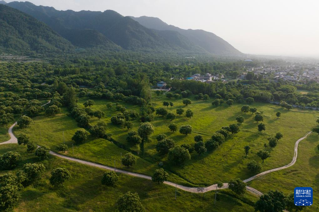 西安市长安区子午街道南豆角村的板栗古树群(5月15日摄,无人机照片)。