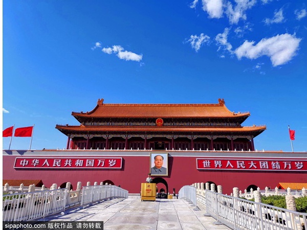 金碧辉煌的天安门城楼始建于明永乐十五年(1417年),原名“承天门”,清顺治八年(1654年)改建后称“天安门”至今。作为明清两朝皇城正门的天安门,如今成为新中国的象征。
