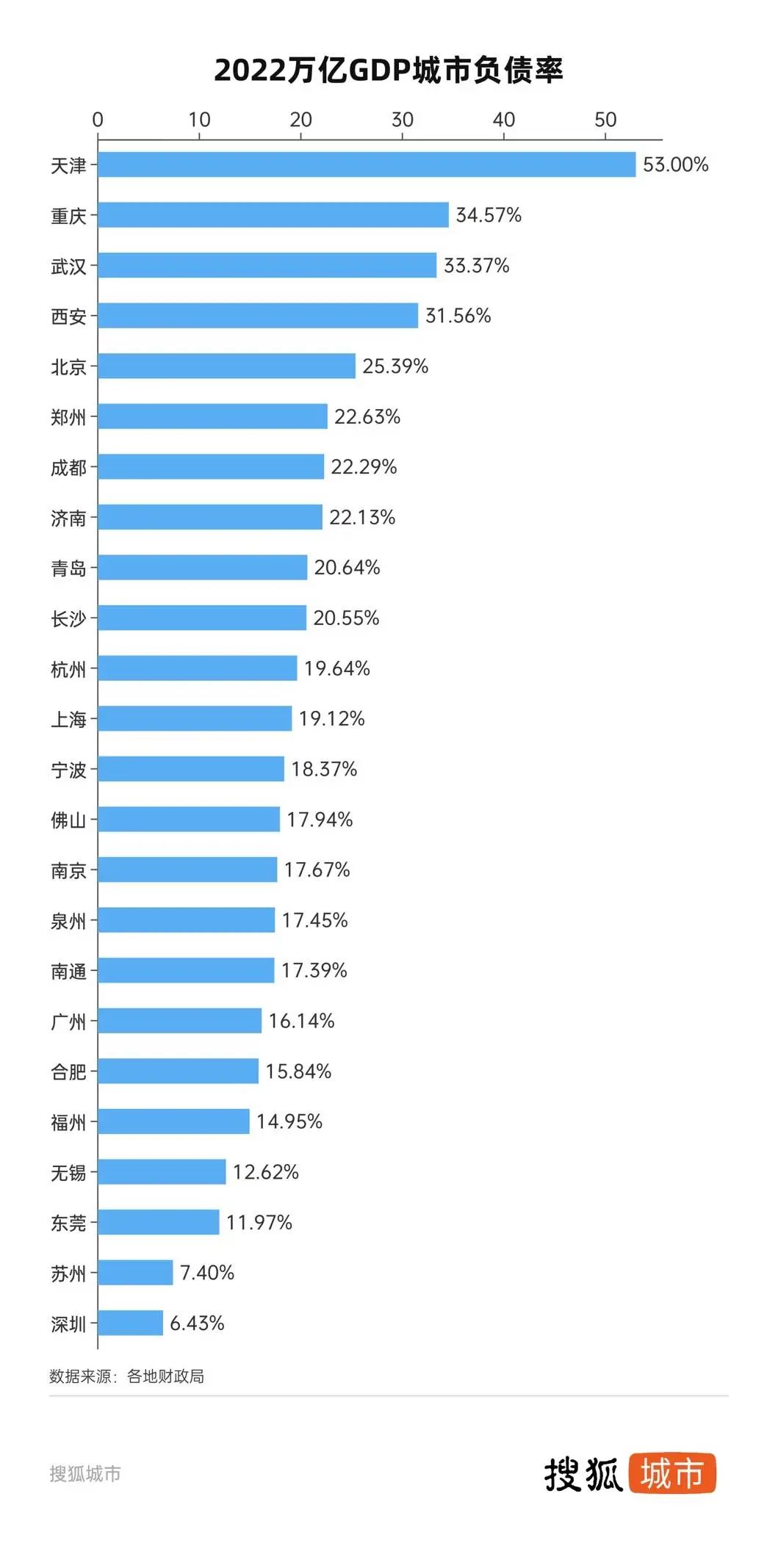 24城负债率均低于国际标准红线的60%,天津53%的负债率已接近红线。