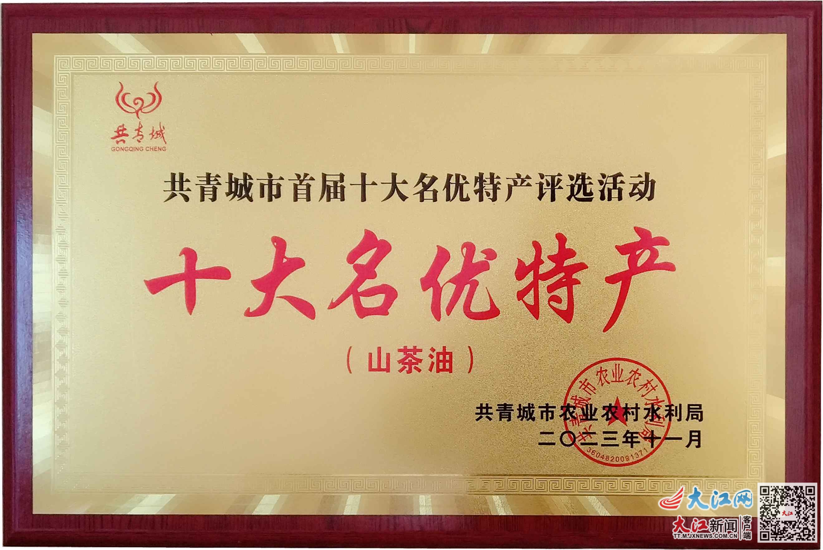 大江网/大江新闻客户端讯 通讯员李振报道:近日,共青城市举办“乐享共青、畅享美食”暨共青城市首届十大名店、名菜、名优特产颁奖活动,共青城市“坂上人家”油茶开发专业合作社获评共青城市十大“名优特产”。