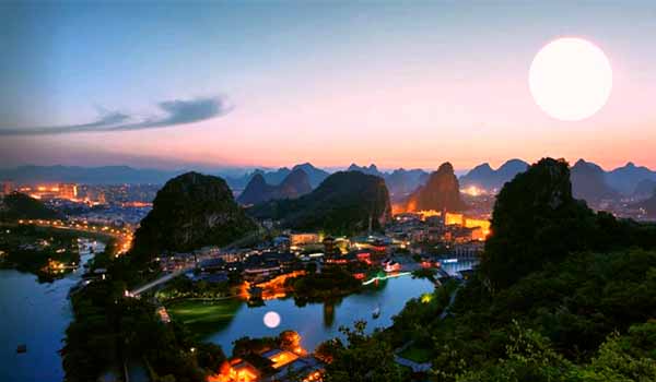 两江四湖:包括桂江、漓江、木龙湖、榕湖、杉湖和桂湖,是桂林市区最著名的的水景,晚上夜景更是迷人。门票价格:约210元/人。