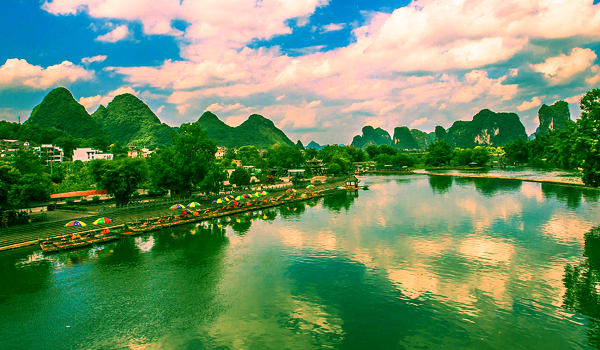 黄布倒影:位于阳朔县城北面,是漓江上最著名的景点之一,可以看到山石、绿树、水面的交相辉映,如同一幅天然画卷。参观免费,坐船根据距离收费。
