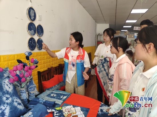 活动最后,研支团成员一行前往景宁小区内的和美社会工作服务中心进行参观。在志愿者的带领下,成员们观赏了镇宁非物质文化遗产蜡染、扎染作品,学习了解了其制作过程,更被这种民族传统手工技艺的悠久历史和浓厚乡土气息所感染。