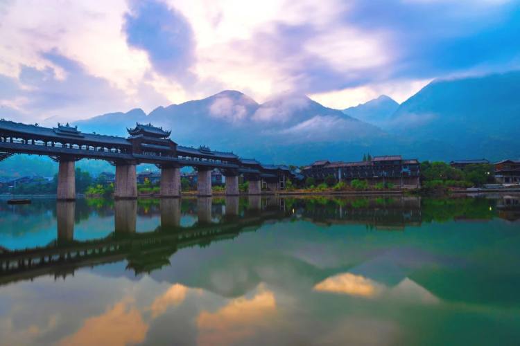 重庆黔江濯水景区位于黔江区东南部,阿蓬江畔。核心景观为濯水古镇,源于唐末繁于明清,格局保留较为完整,是渝东南地区最负盛名的古镇之一。景区内还有蒲花暗河,其中的大漏斗组成了“苍天有眼”等自然奇观。以及“世界第一风雨廊桥”沧浪桥,历史文化传统建筑万天宫、万寿宫等。