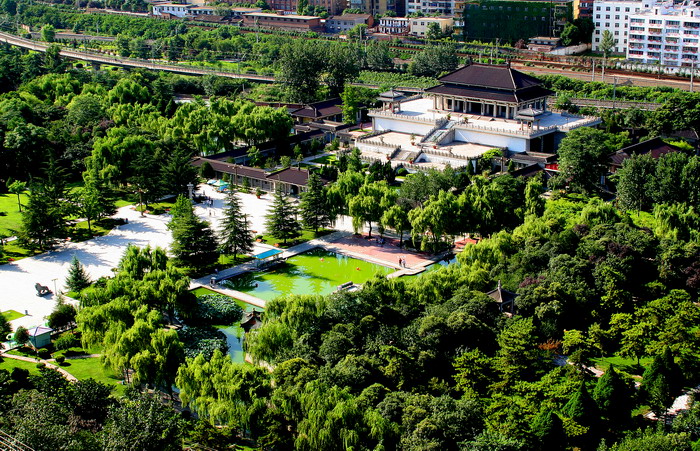 炎帝祠坐落在宝鸡市区经二路西段的河滨公园。宝鸡市历史上的多处炎帝祠皆因战乱被毁,河滨公园内的炎帝祠是1993年8月重新修建落成并对外开放。门额上书“炎帝故里”四个金色大字,是原国务院副总理和全国人大常委会副委员长田纪云于1993年中国宝鸡炎帝节之际所题。民盟中央原主席费孝通也为炎帝园题写了园名。每年清明节,宝鸡市委、市政府组织党政干部、海内外人士和各界群众在这里举行公祭炎帝活动。炎帝祠占地面积9000平方米,建筑面积3863平方米,主殿高21米,为仿秦、汉高台建筑,外观气势雄伟。祠内塑炎帝像,高5.5米,庄重而宏大。殿堂壁画214平方米,是一组内容为农业之神、太阳之神、医药之神的大型壁画,生动地再现了华夏始祖炎帝率先民创制农具、教农耕种五谷、采药解除病魔、为民尝百草、制琴普乐的情景。西廊有众多国内名人题词,歌颂炎帝功德。园内三面植有松柏、花草,四季常青。2004年4月,宝鸡市人民政府决定,将公园门楼拆除,建立广场向社会开放。如今,这里已是广大市民晨练、夜曲、游乐的好地方。