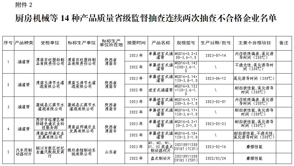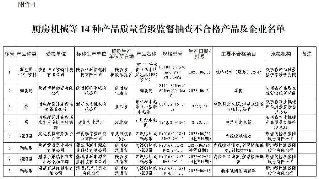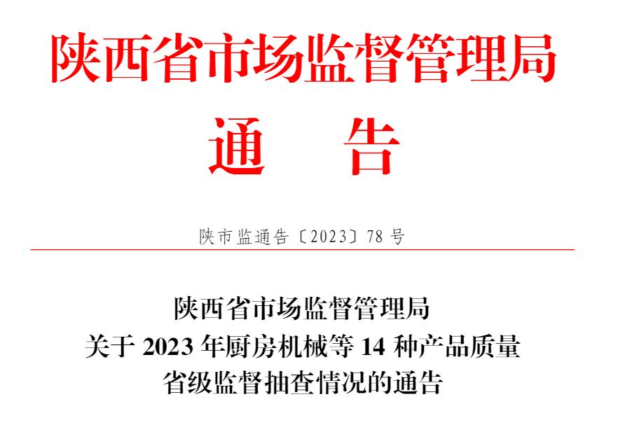 原标题:《陕西省市场监督管理局关于2023年厨房机械等14种产品质量省级监督抽查情况的通告》