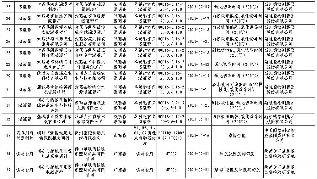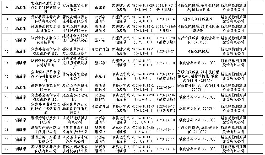 本次在西安、宝鸡、咸阳、渭南、榆林等地区流通领域抽查了40家企业生产的50批次产品,发现不合格产品28批次,抽查不合格率为56%。重点对外观、公称内径极限偏差、公称壁厚极限偏差、滴水孔间距偏差率、耐拉拔性能、不透光性、炭黑含量、流量均匀性、氧化诱导时间、耐水压、爆破压力等11个项目进行了检验。不合格项目涉及公称内径极限偏差、公称壁厚极限偏差、滴水孔间距偏差率、耐拉拔性能、氧化诱导时间。经技术机构分析,不合格的主要原因:一是生产原料不符合标准要求;二是企业生产工艺不规范或者生产设备和模具不符合要求。
